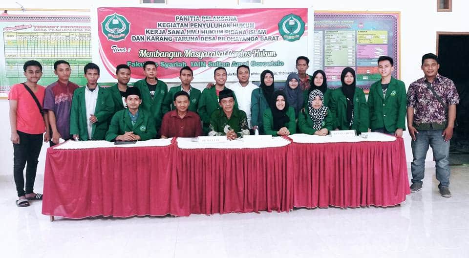 “Saya sangat mengapresiasi dan sangat berterima kasih kepada Himpunan Mahasiswa Jurusan Hukum Pidana Islam yang telah bekerjasama dengan Karang Taruna dalam melaksanakan penyuluhan hukum kepada masyarakat Desa Pilohayanga. Penyuluhan hukum ini sangat bermanfaat dan tentu sangat memberikan pencerahan kepada masyarakat yang masih buta terhadap hukum”, ujar Kepala Desa Pilohayanga Barat.